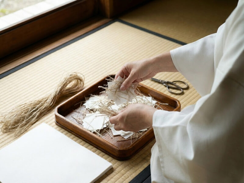 ここが一番の注意点です。 床や地面に落ちた切麻には、あなたの体から落ちた「穢れ(けがれ)」が吸着しています。